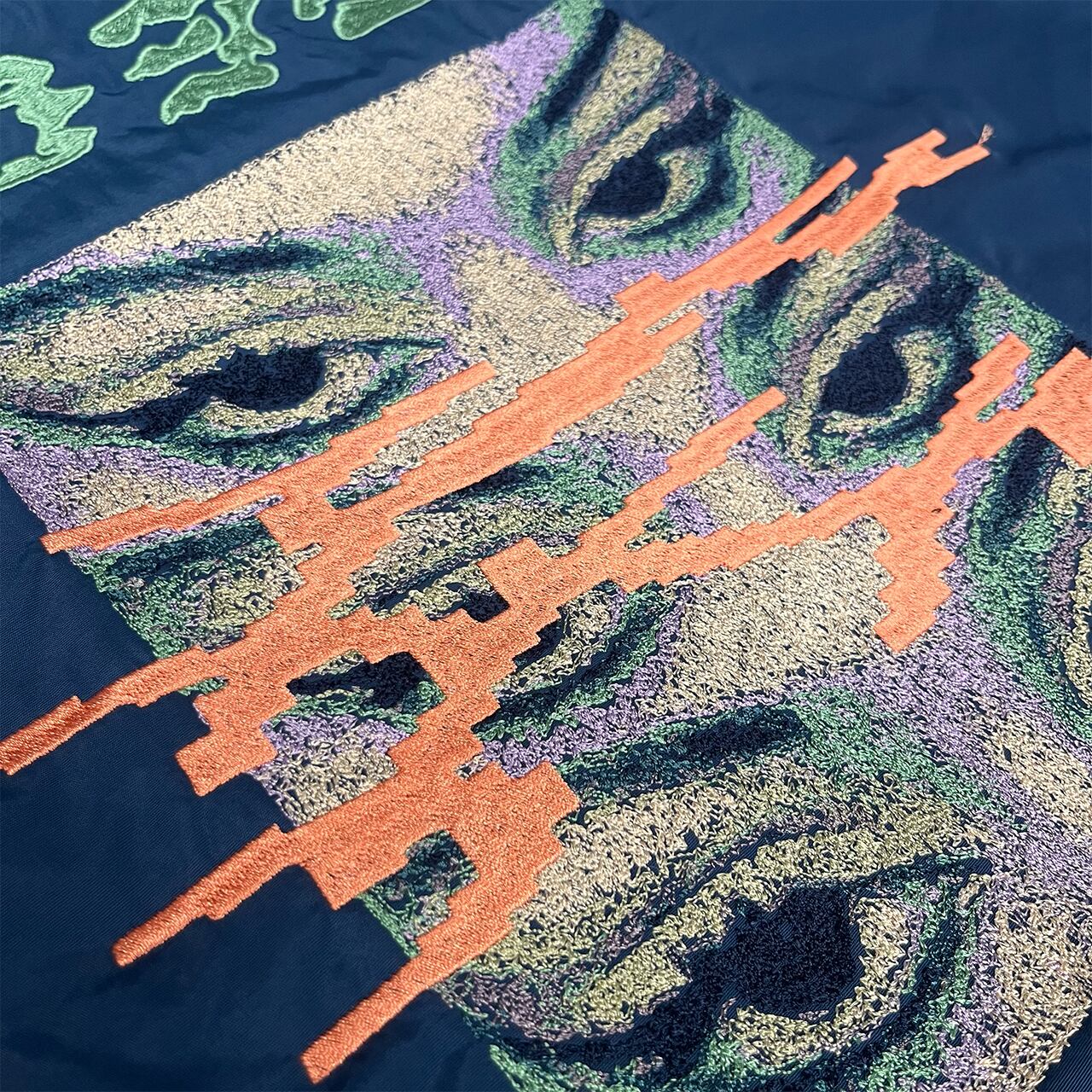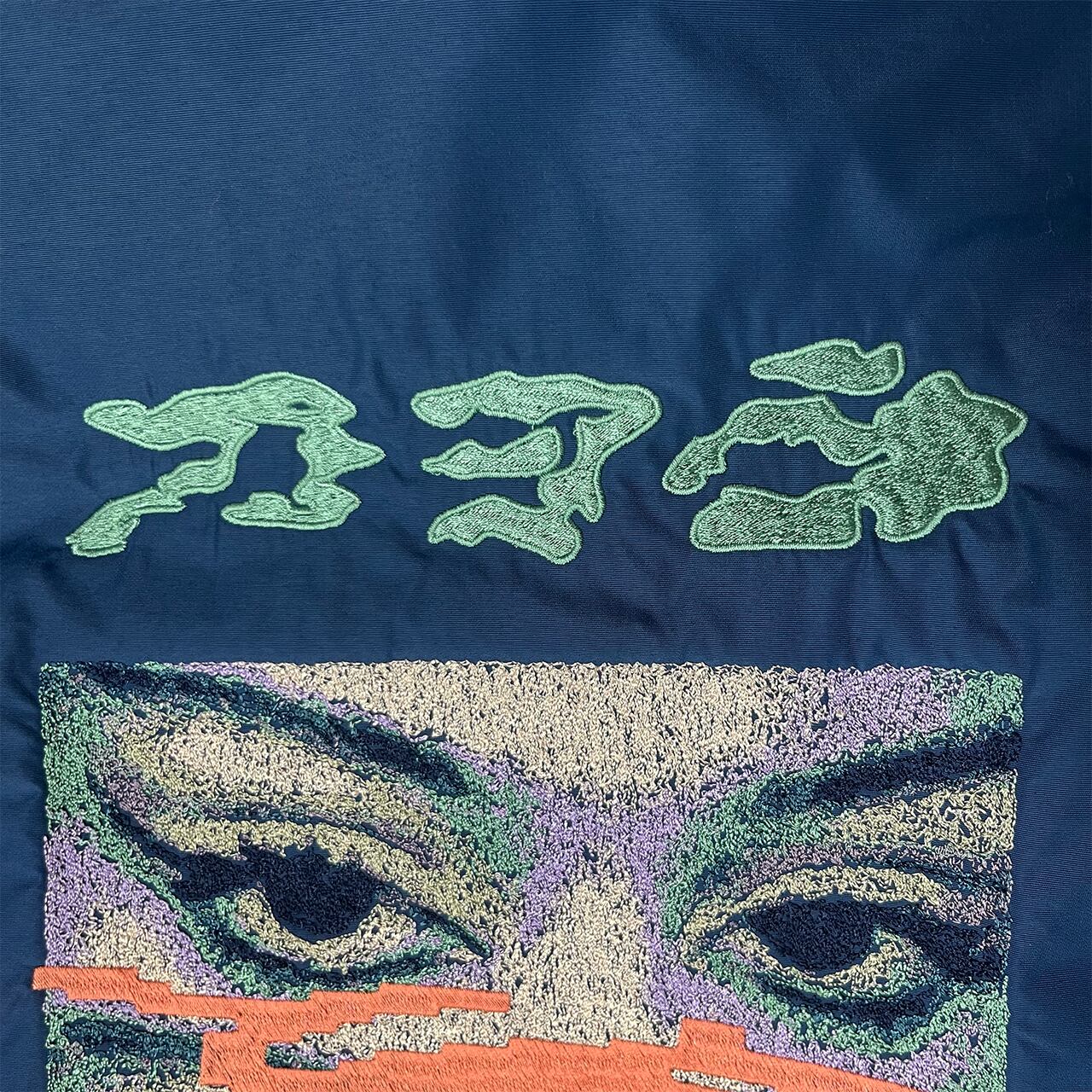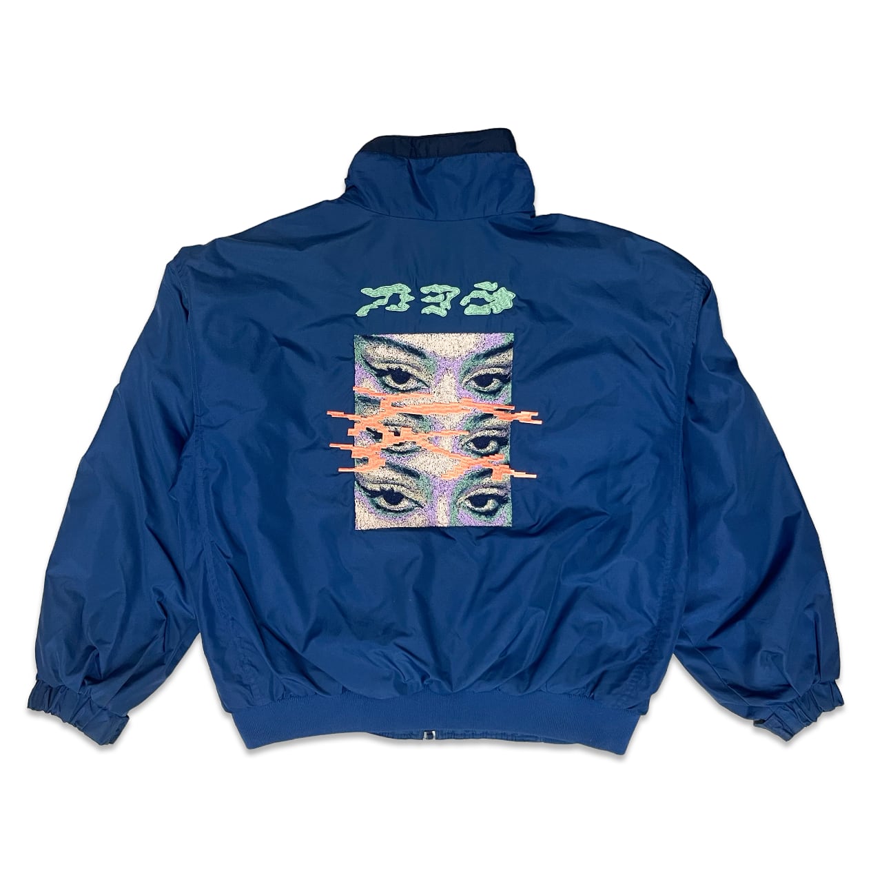 "Open your eyes" on used nylon jacket.