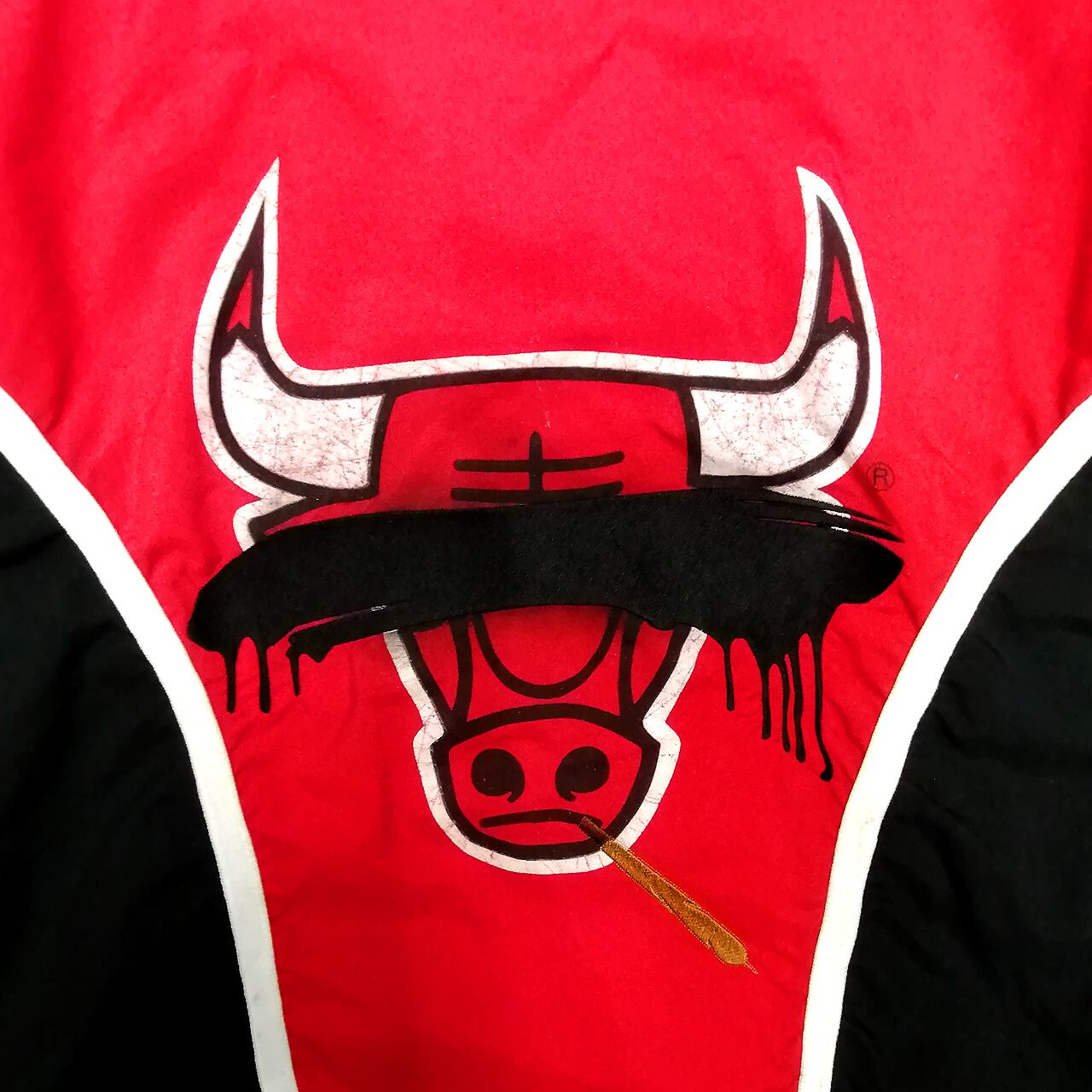 "Some where...CHILLS" on used nylon jacket.