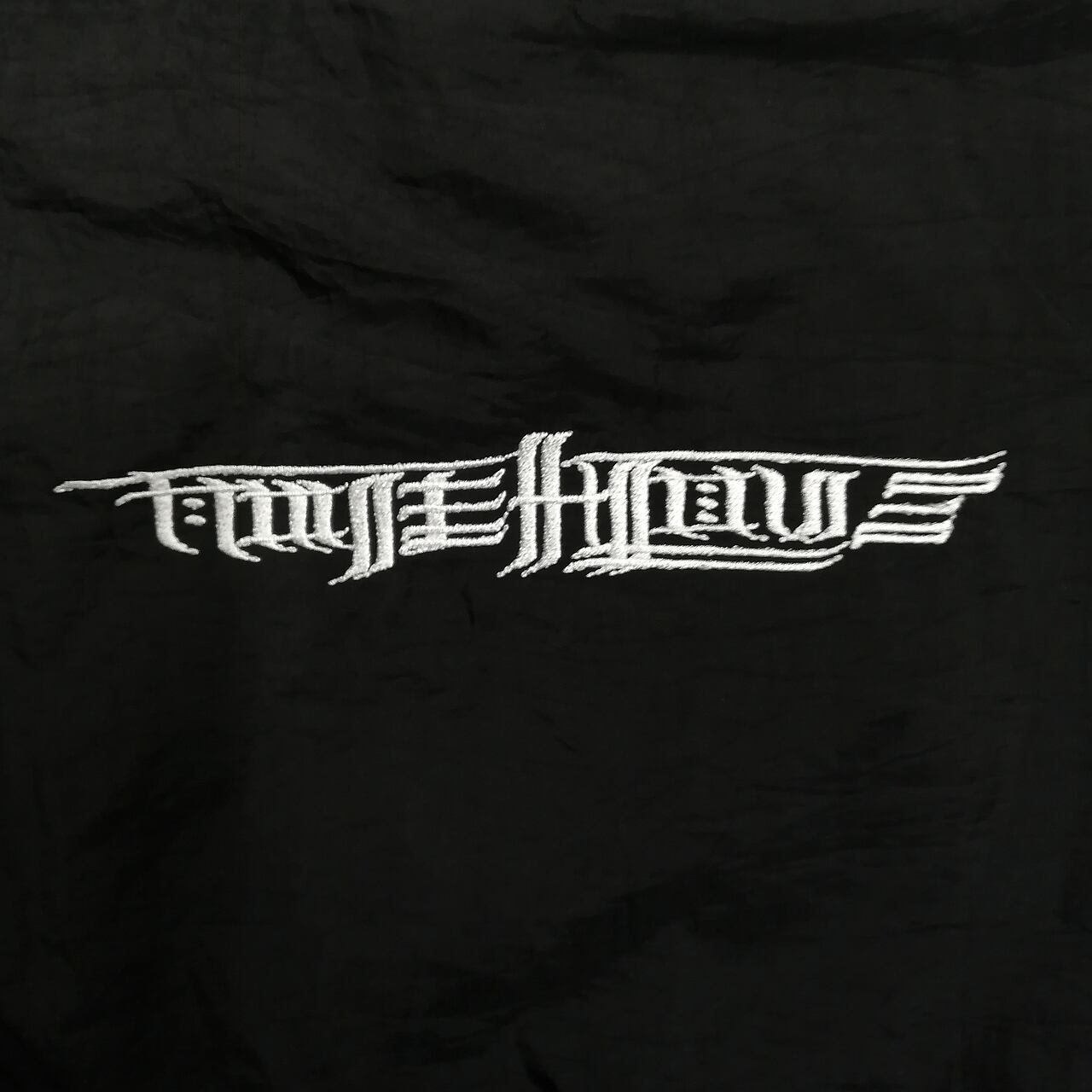 "般若心経" on used nylon jacket